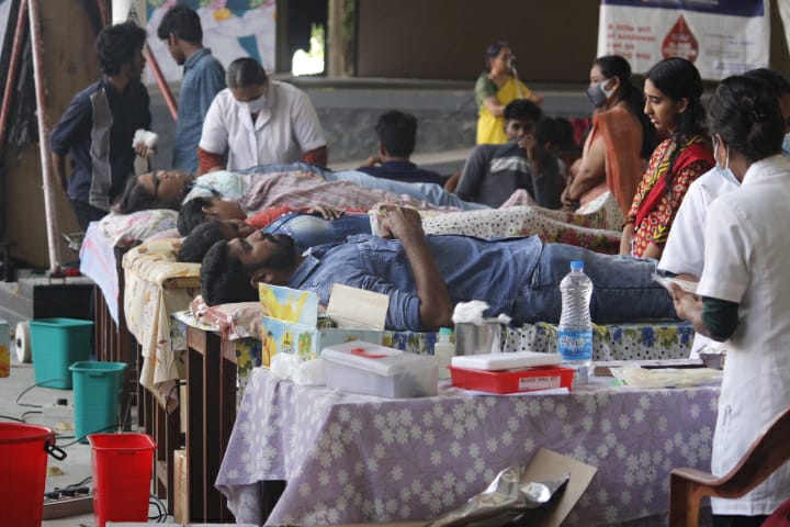 ഫോട്ടോ അടിക്കുറിപ്പ് : നാഷണൽ സർവ്വീസ് സ്കീം ദിനാചരണങ്ങളുടെ ഭാഗമായി സംഘടിപ്പിച്ച രക്തദാന ക്യാമ്പിൽ ശ്രീ ശങ്കരാചാര്യ സംസ്കൃത സർവ്വകലാശാല കാലടി മുഖ്യക്യാമ്പസിലെ വിദ്യാർത്ഥികളും ജീവനക്കാരും രക്തദാനം ചെയ്യുന്നു.