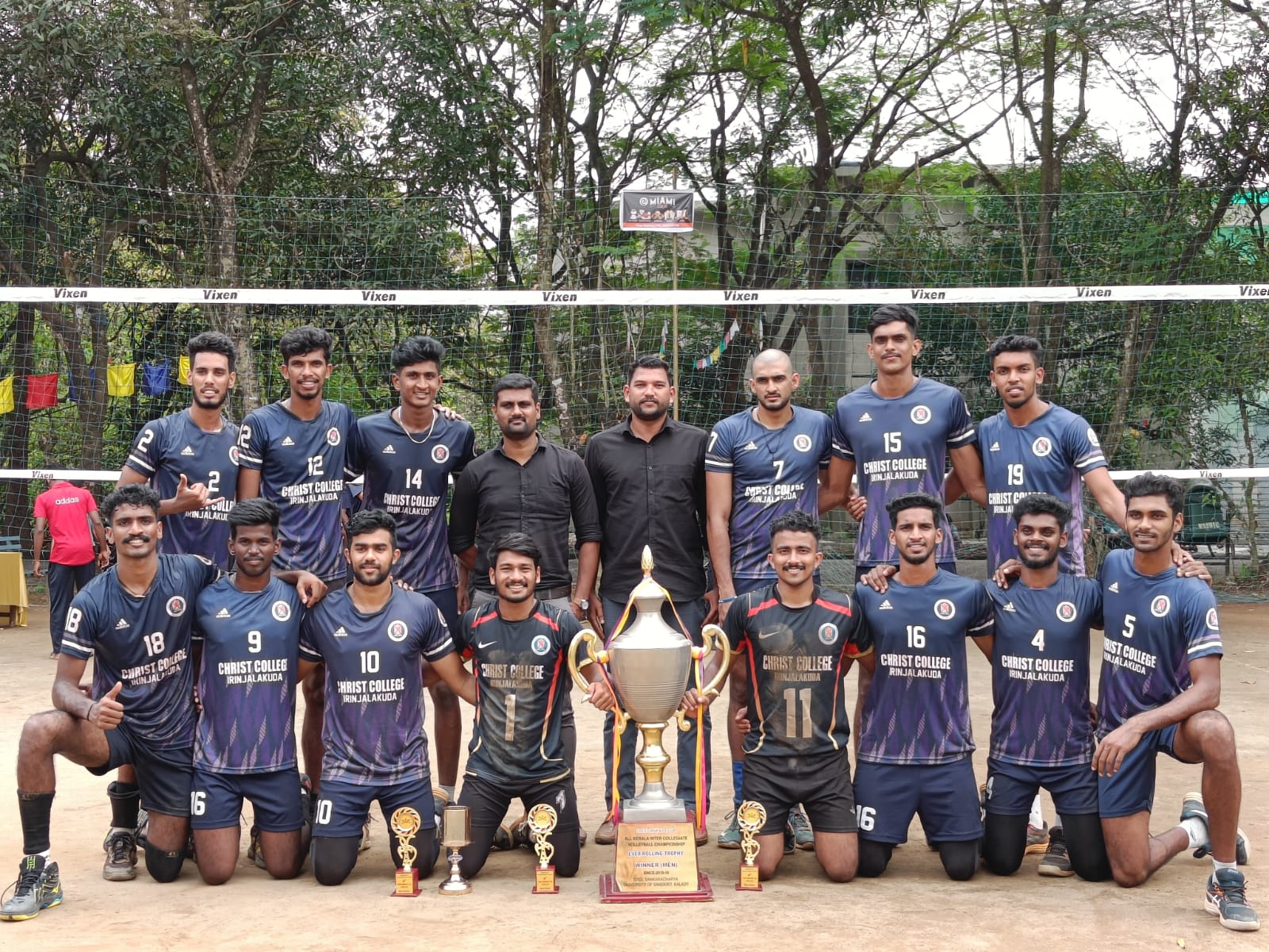 ഫോട്ടോ അടിക്കുറിപ്പ് : ശ്രീ ശങ്കരാചര്യ സംസ്കൃത സർവകലാശാലയിലെ കായിക പഠന വിഭാഗത്തിന്റെ ആഭിമുഖ്യത്തിൽ കാലടി മുഖ്യ ക്യാമ്പസിൽ സംഘടിപ്പിച്ച ശ്രീ ശങ്കരാചര്യ സംസ്കൃത സർവകലാശാല ട്രോഫിക്കു വേണ്ടിയുളള നാലാമത് അഖില കേരള ഇന്റർ കൊളേജിയറ്റ് വോളിബോൾ ടൂർണമെന്റിൽ ചാമ്പ്യന്മാരായ ഇരിഞ്ഞാലക്കുട ക്രൈസ്റ്റ് കോളേജ് ടീം ട്രോഫിയുമായി.